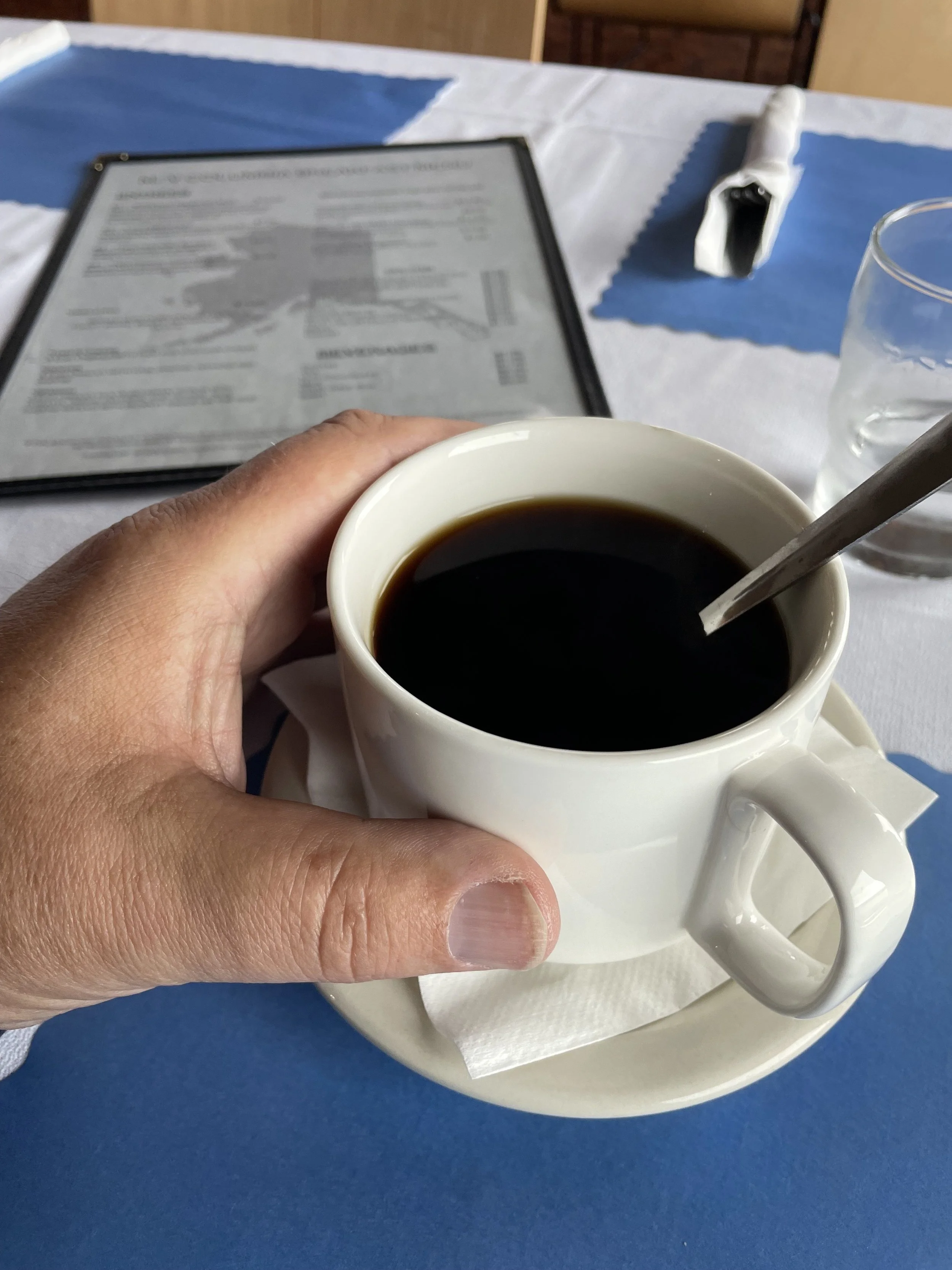I left Sitka yesterday afternoon, my bags bursting with souvenirs, mementos and boat snacks. I love that narrow section north out of Sitka through Olga and Neva Straits through Hoonah Sound to Chatham Strait – I took a ton of pictures! Evening came fast and I had hoped to get clear enough skies to catch the Aurora Borealis, but it wasn’t to be. Midnight came along, and I gently laid my head on my bumpy boat pillow. Before dawn we were cruising through Frederick Sound and nudging into Petersburg’s harbor. The town was just stirring—a floatplane droning overhead, fishing boats packing gear, and gulls circling the docks. The crew slipped the lines from the moorings and the boat continued south. A little over an hour later we tied up in Wrangell, long enough to watch the tide rise around the pilings and grab a cup of coffee thick enough to stand a spoon in. The joe was needed greatly this morning. The ports of call were errr-lee, and my ears caught every announcement.Sumner Strait was the next body of water The M/V Columbia made it’s way though. We threaded past tiny Meyers Chuck and entered Clarence Strait, where the weather announced itself with zero subtlety. Ten minutes earlier the water wore just a couple of whitecaps; suddenly two dozen danced across the same patch of sea. The wind stiffened, the cloud ceiling sagged until it kissed the distant hills, and a soft gray rain pattered down—breakfast, served Alaskan style.